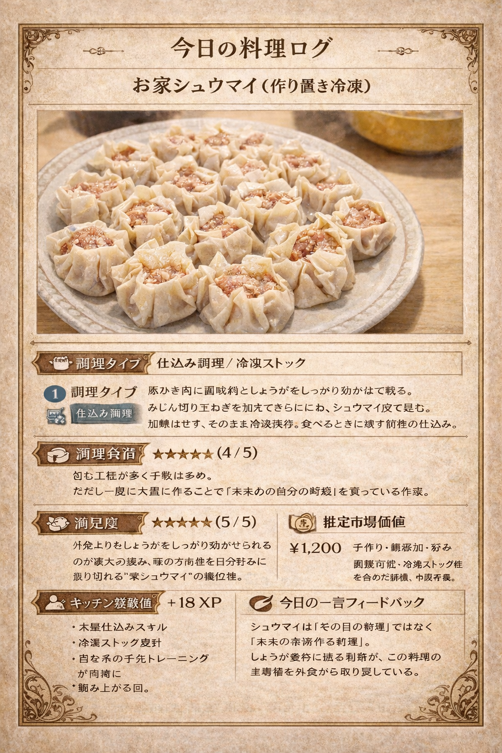 シュウマイは“その日の料理”ではなく“未来の余裕を作る料理”。
